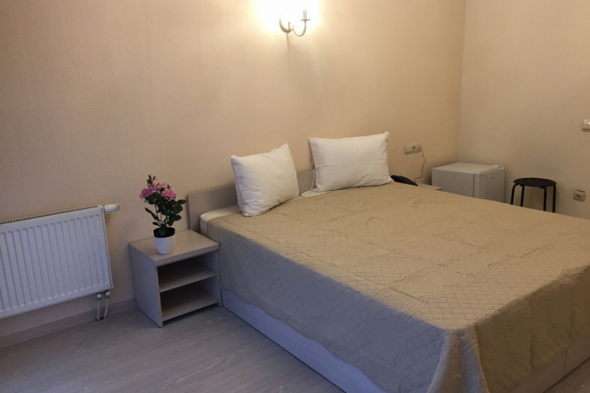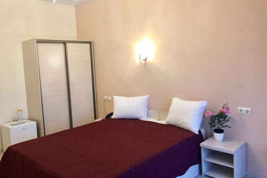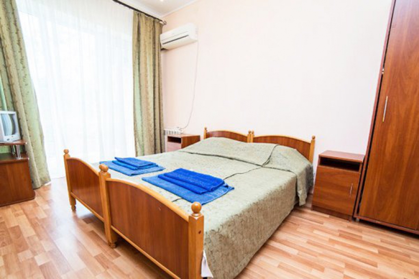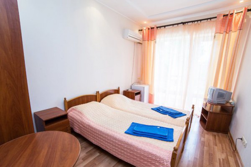Оснащение: две односпальные кровати, прикроватные тумбочки, шкаф, стол, стулья, кондиционер, телевизор, холодильник, телефон.